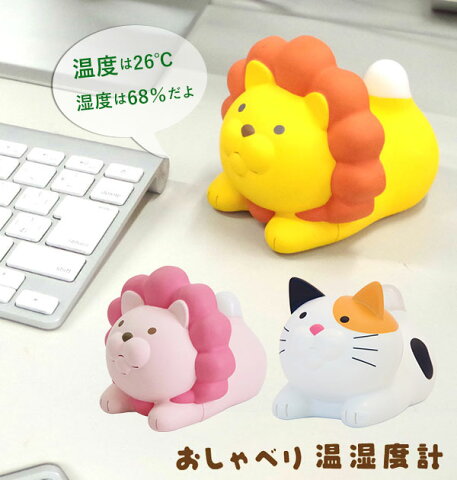 温湿度計 おしゃれ 好評 温度湿度計 かわいい おしゃべり温湿度計 どうぶつ アニマル にゃんこ計 お喋り しゃべる ライオン ネコ ミケ ミケネコ 猫 にゃんこ 湿度計 温度計 ベビー 赤ちゃん キッズ 子ども 光でお知らせ 熱中症対策 湿度管理